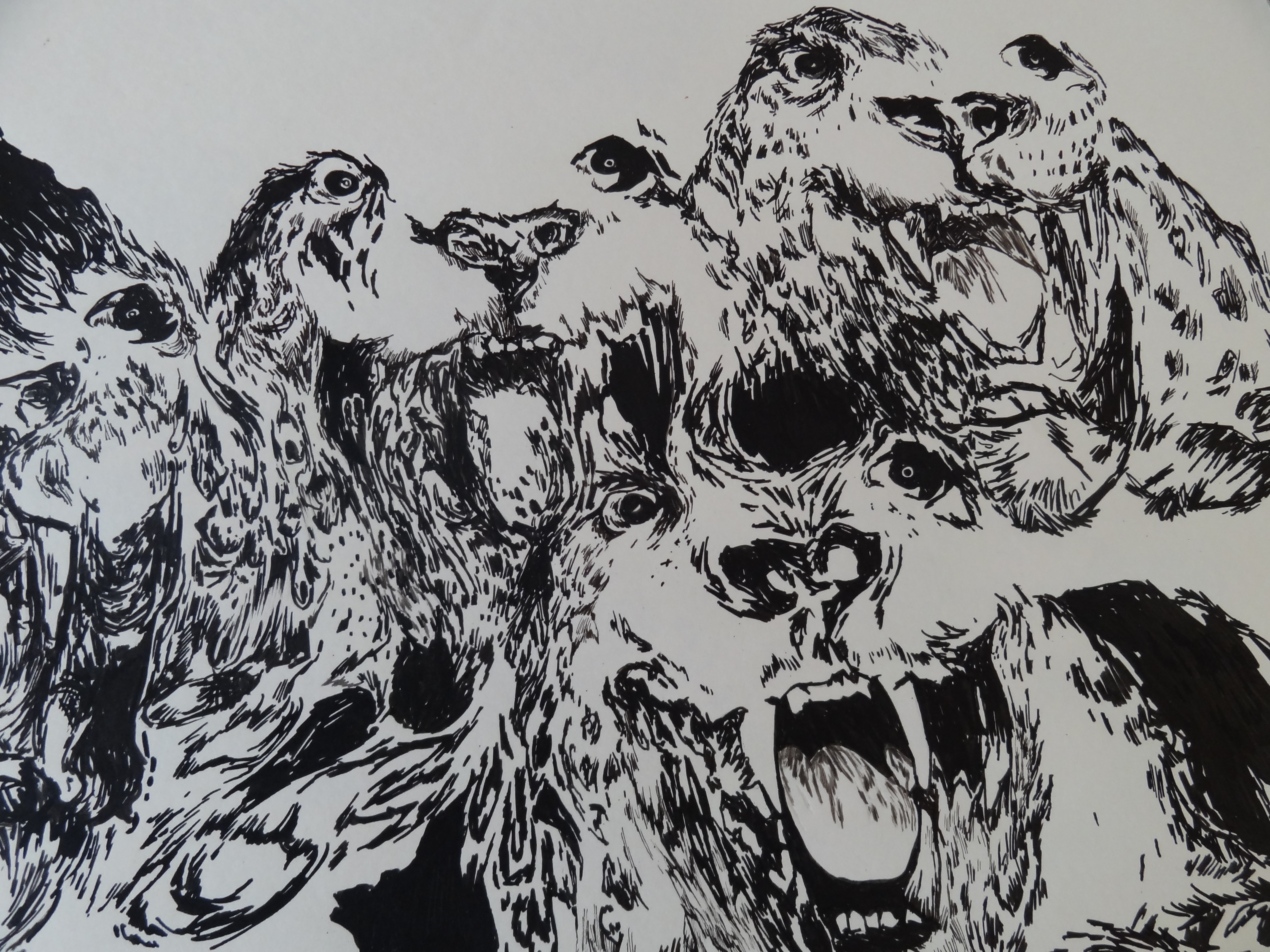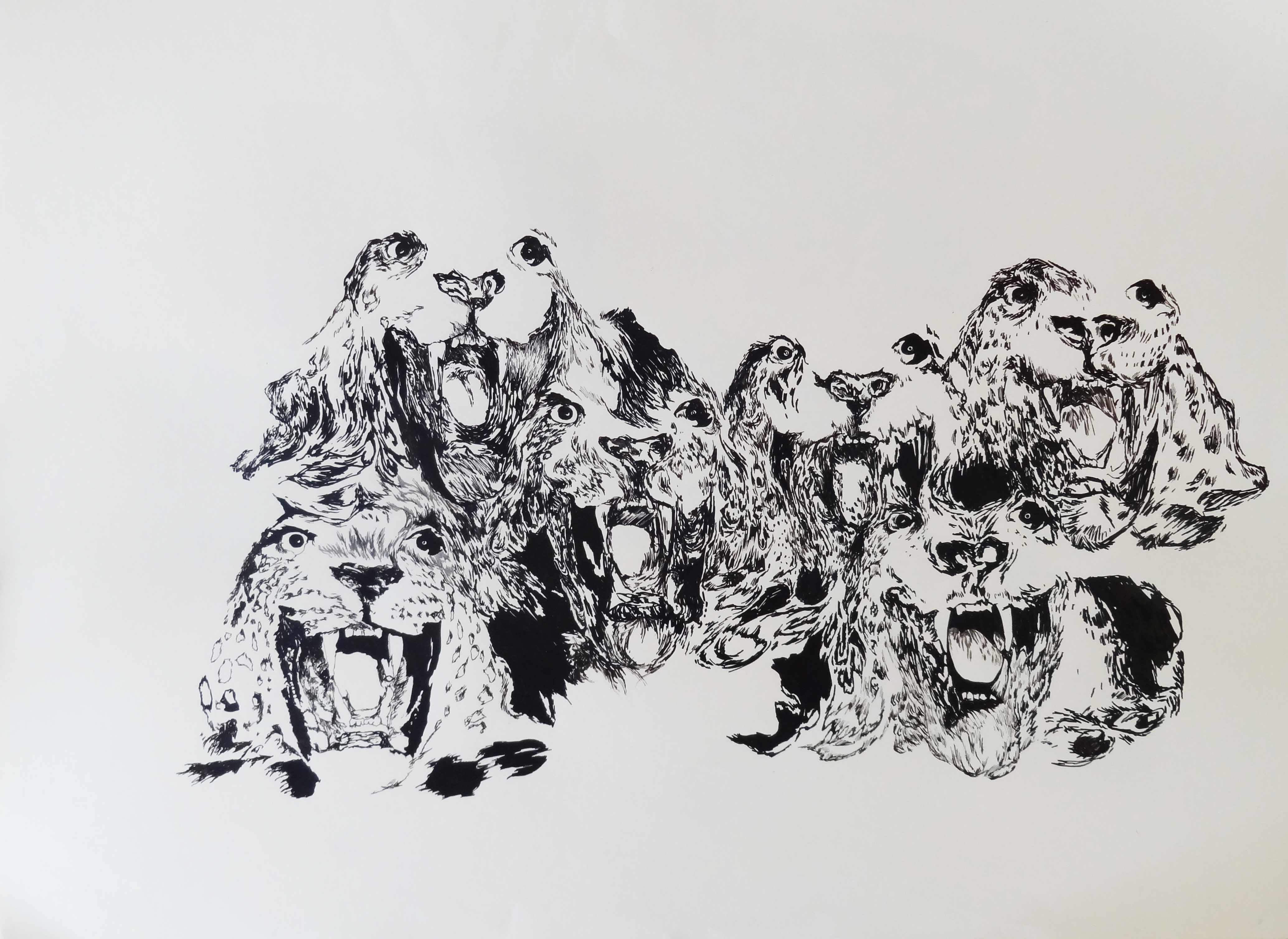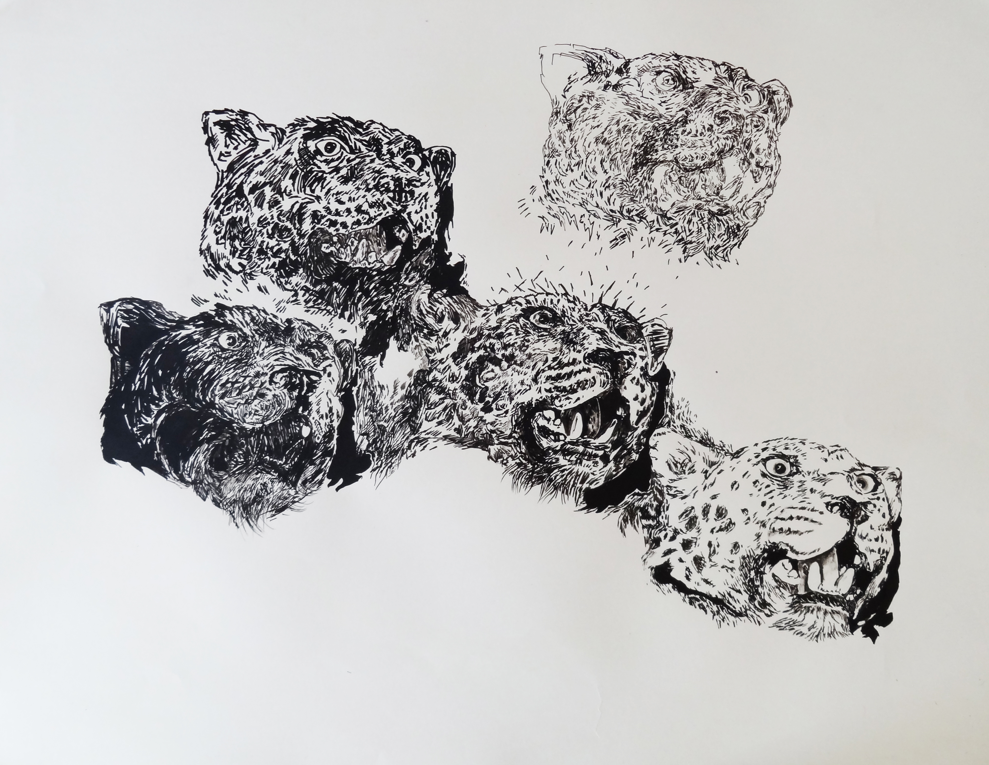 Grands fauves, felt pen drawings on paper and serigraphs, variable dimensions.