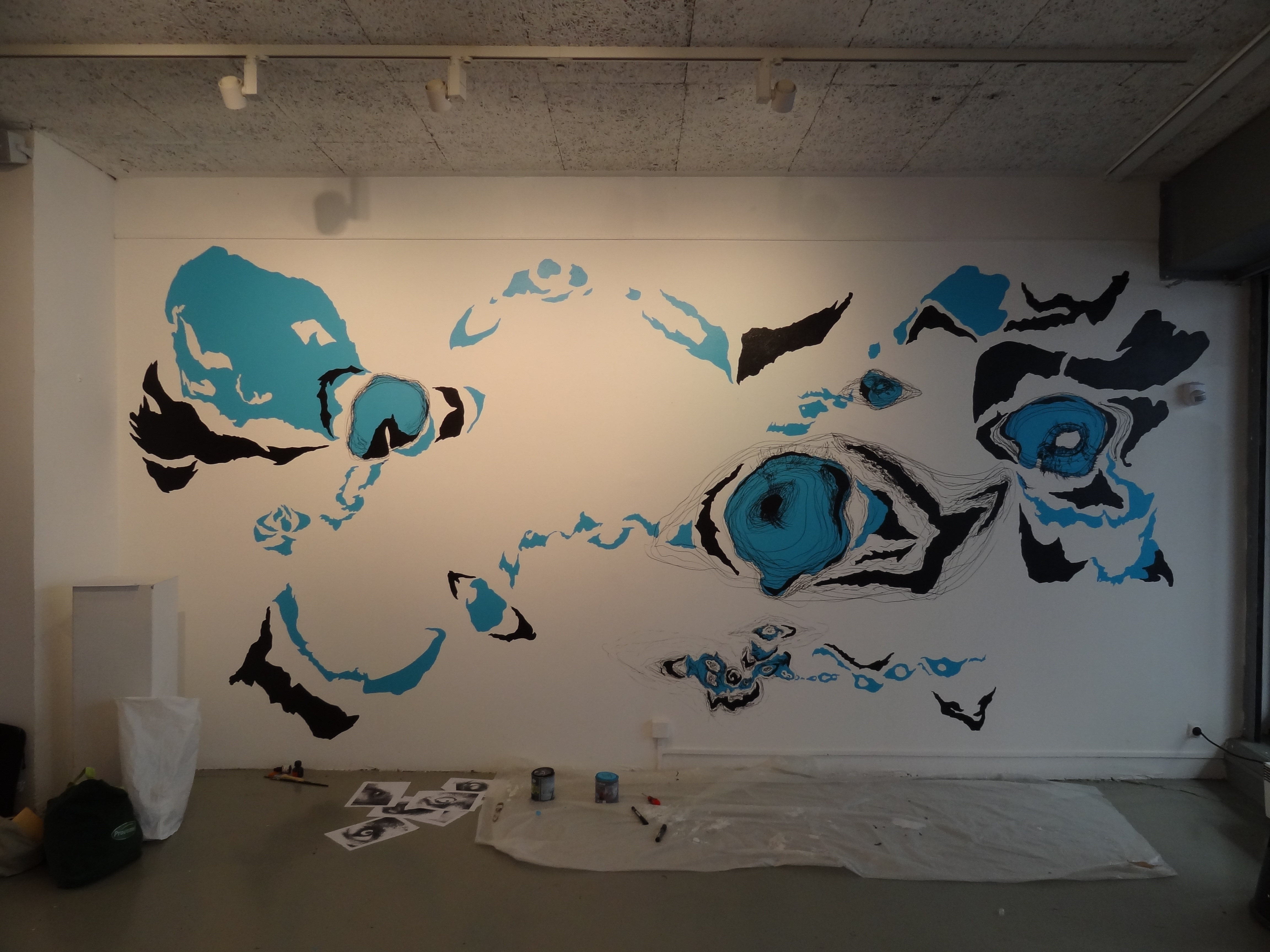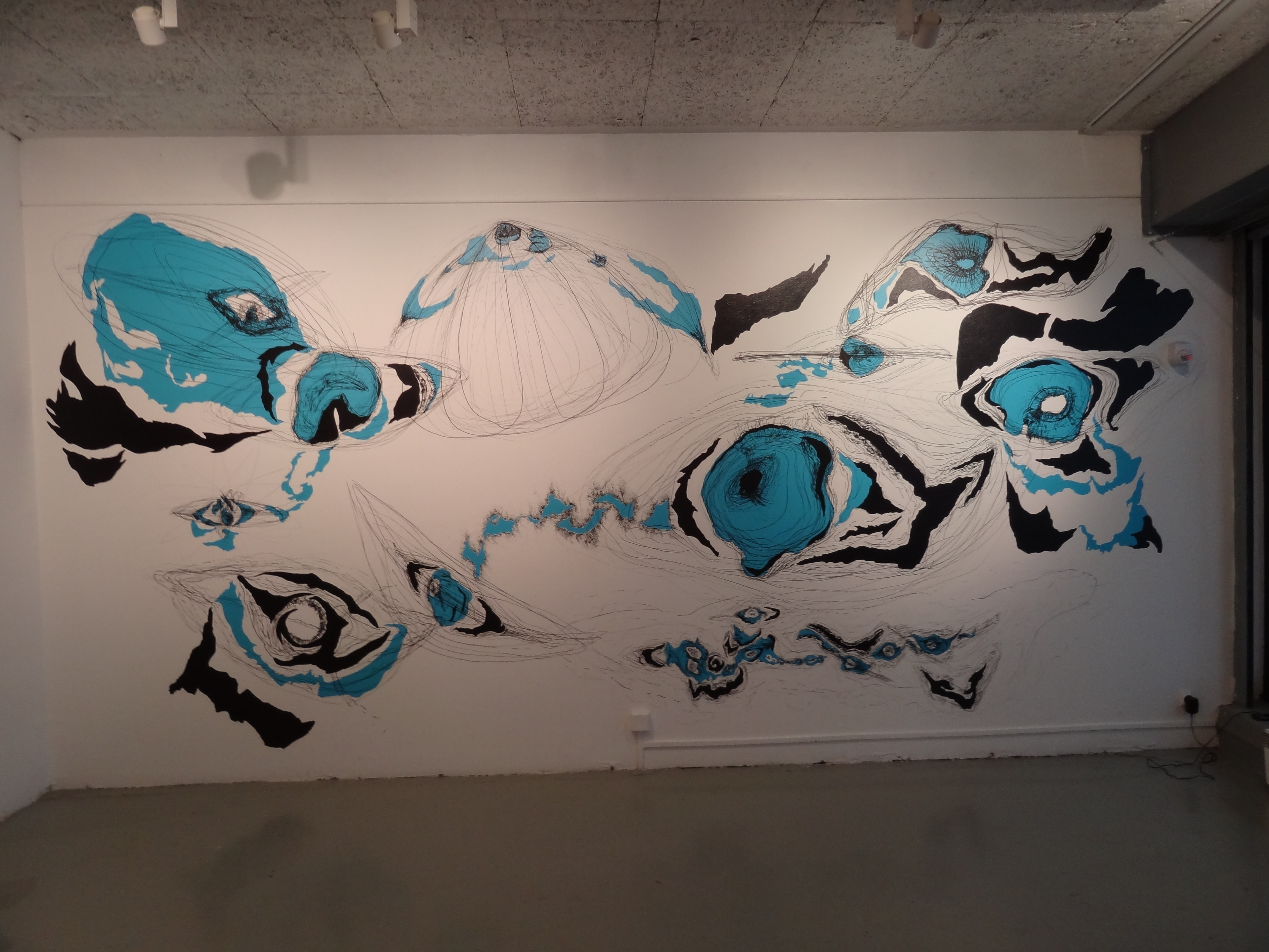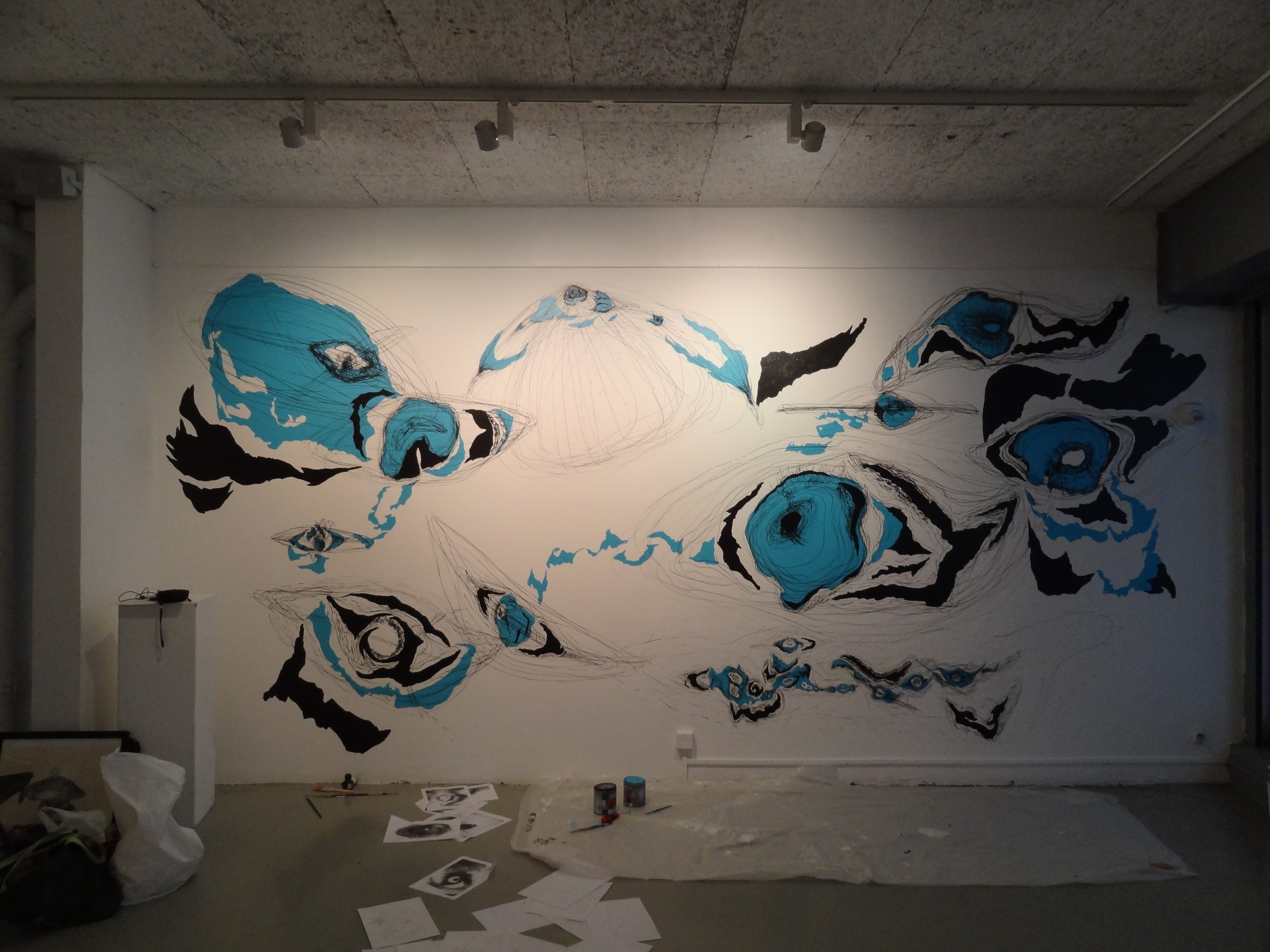 Nébuleuses (variation 1), fresco realized for the exhibition Oxymore and More at the Espace Larith (Chambéry). Mixed media, 5 x 2,5 m approximately.