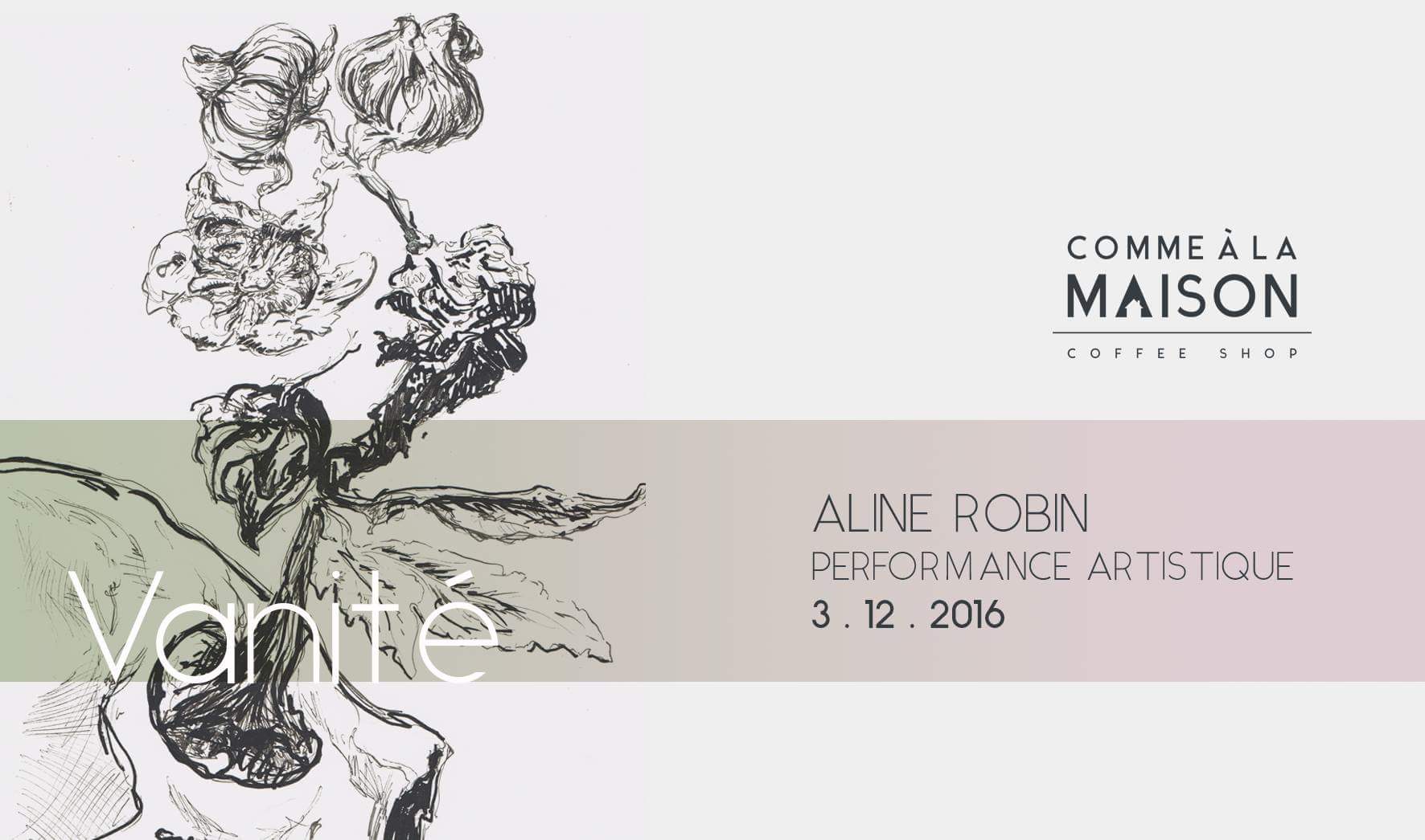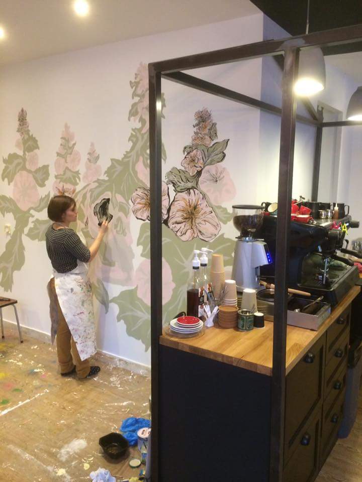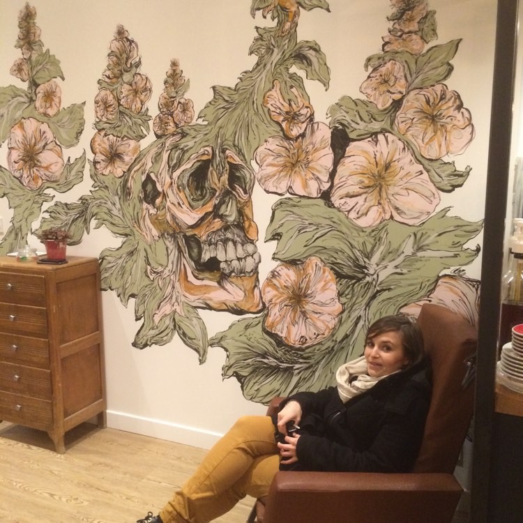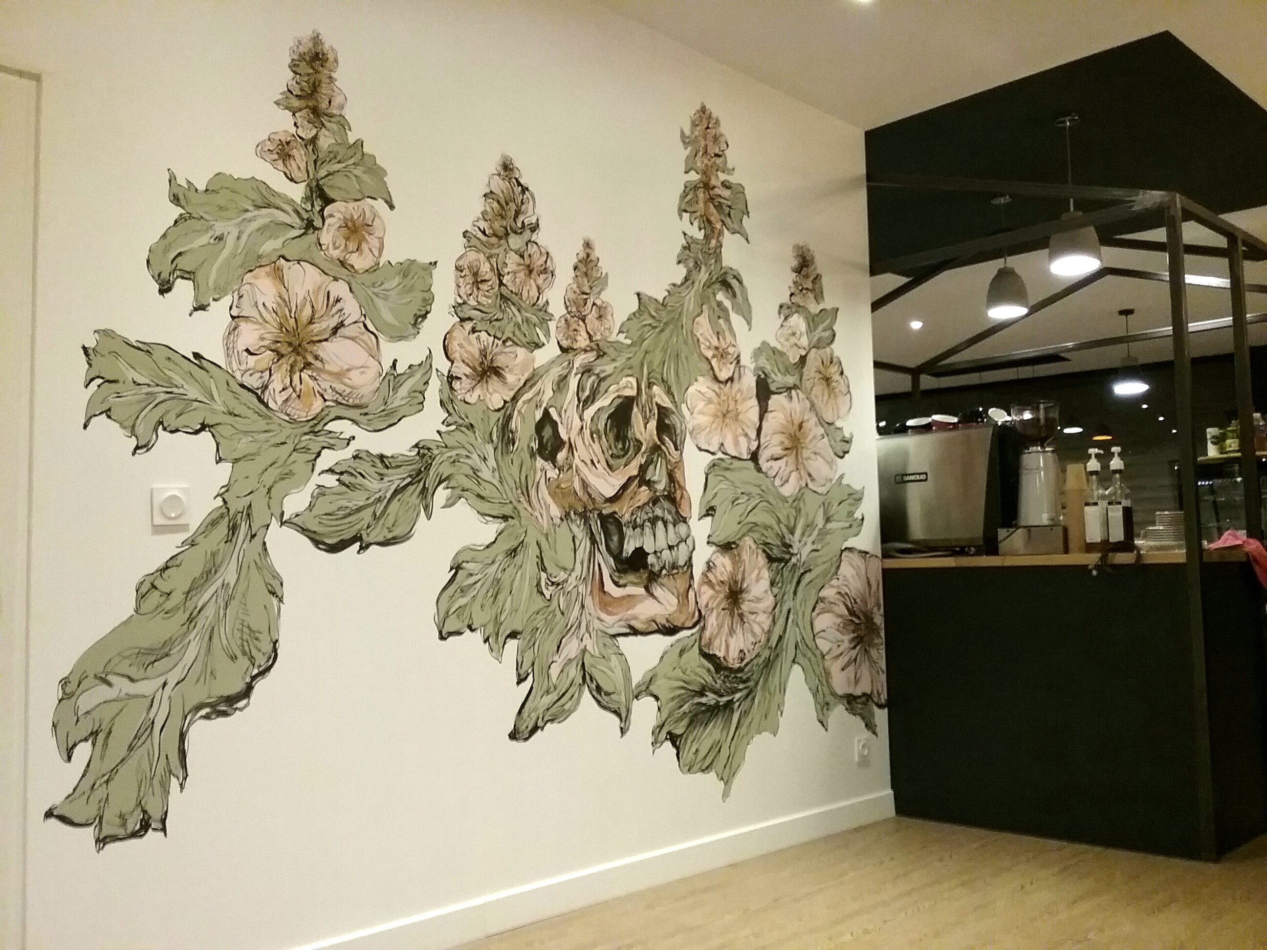 Vanité, fresco realized at Coffee Shop COMME À LA MAISON (Lyon) in December 2016 over one day. Acrylic and felt on wall.