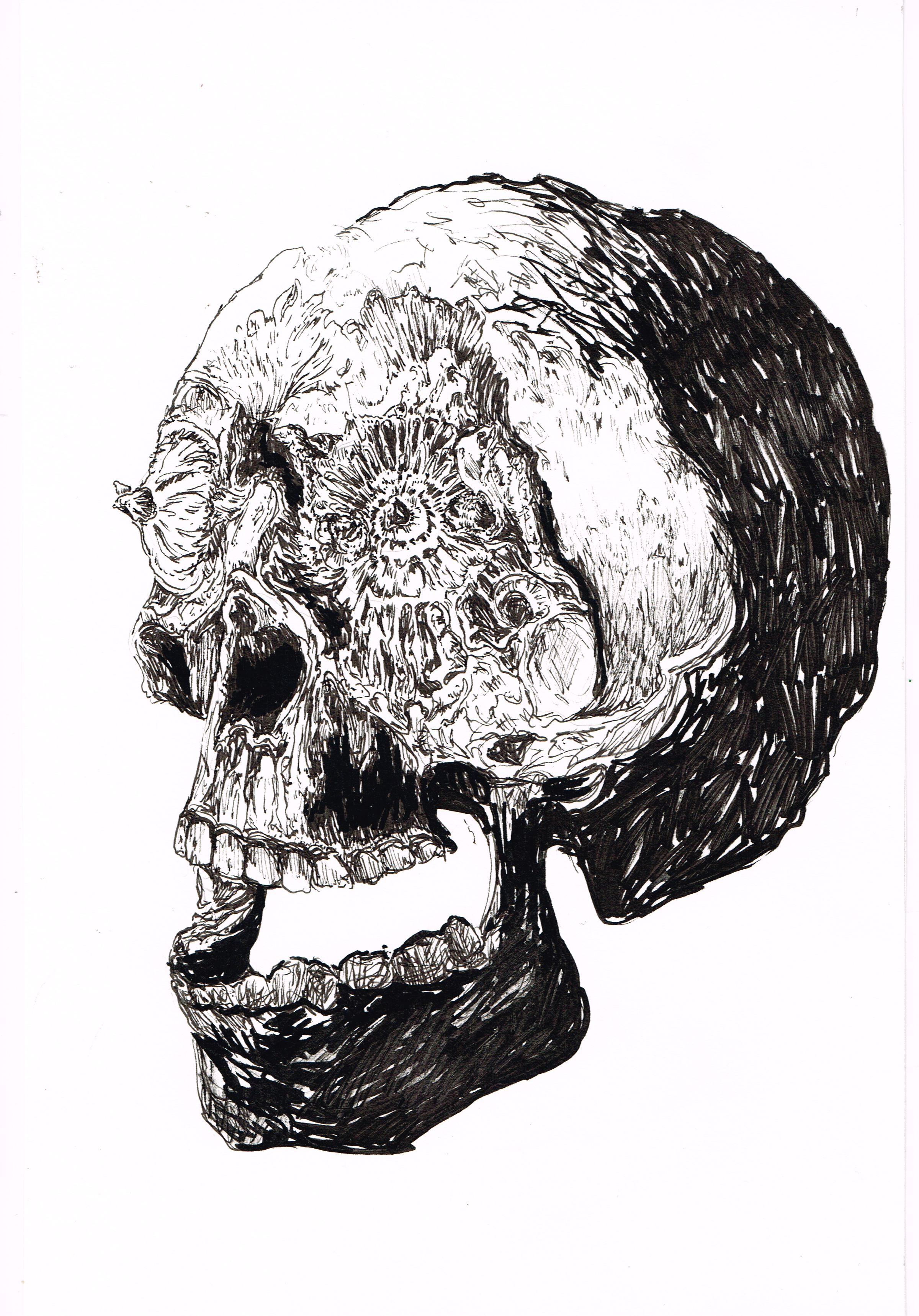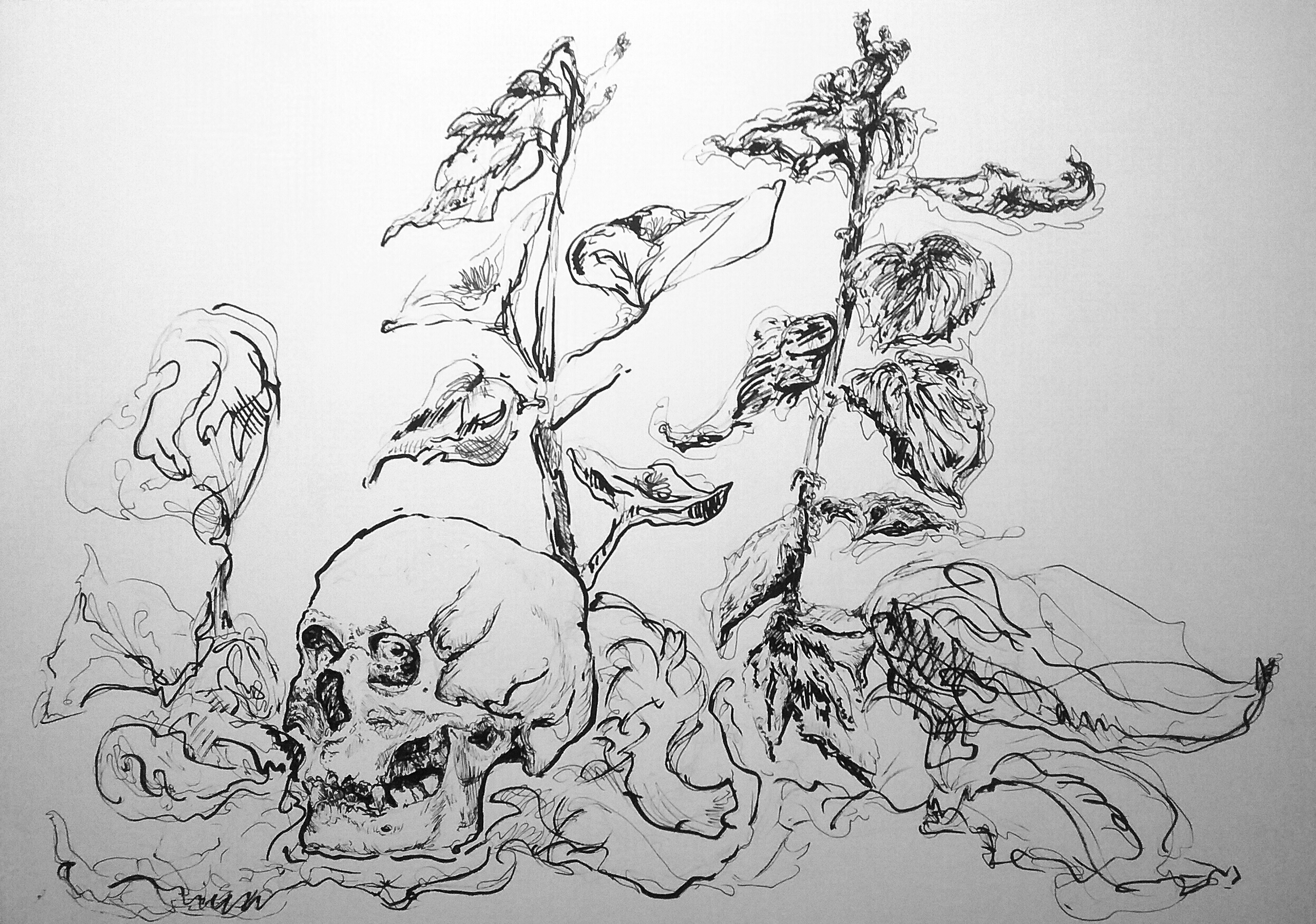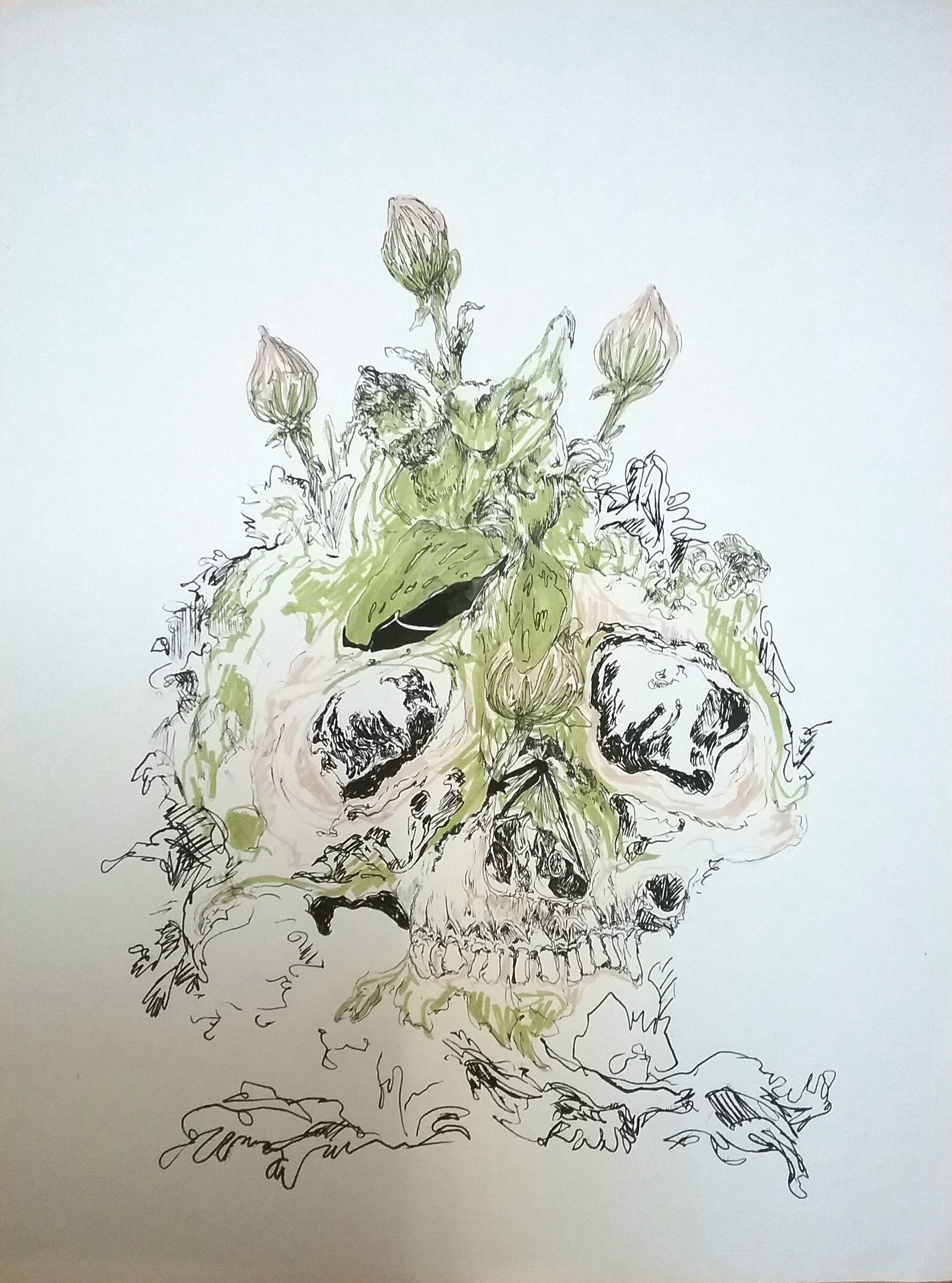 Vanité, fresco realized at Coffee Shop COMME À LA MAISON (Lyon) in December 2016 over one day. Acrylic and felt on wall.