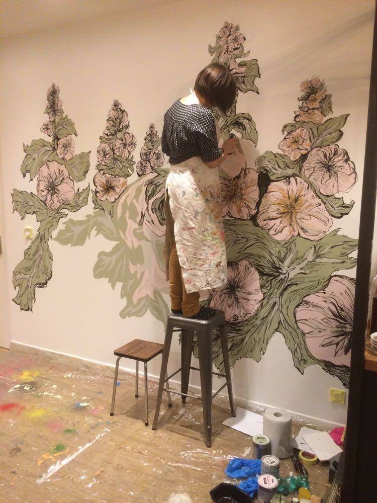 « Vanité », realized at Coffee Shop COMME À LA MAISON (Lyon) in December 2016 over one day. Acrylic and felt on wall.